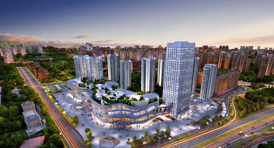 项目总建筑面积超52万平方米,其中具有国际风范的现代化城市级购物中心,已于2020年12月18日盛大开业,成为惠州新兴商业地标。其150米地标写字楼采用全玻璃幕墙设计,顶层配备全国首个A级资质的商务直升机停机坪,实现深莞惠半小时空中通勤,构筑大湾区低空经济走廊重要节点。建筑群以错落有致的空间组合,重塑金山湖天际线美学。